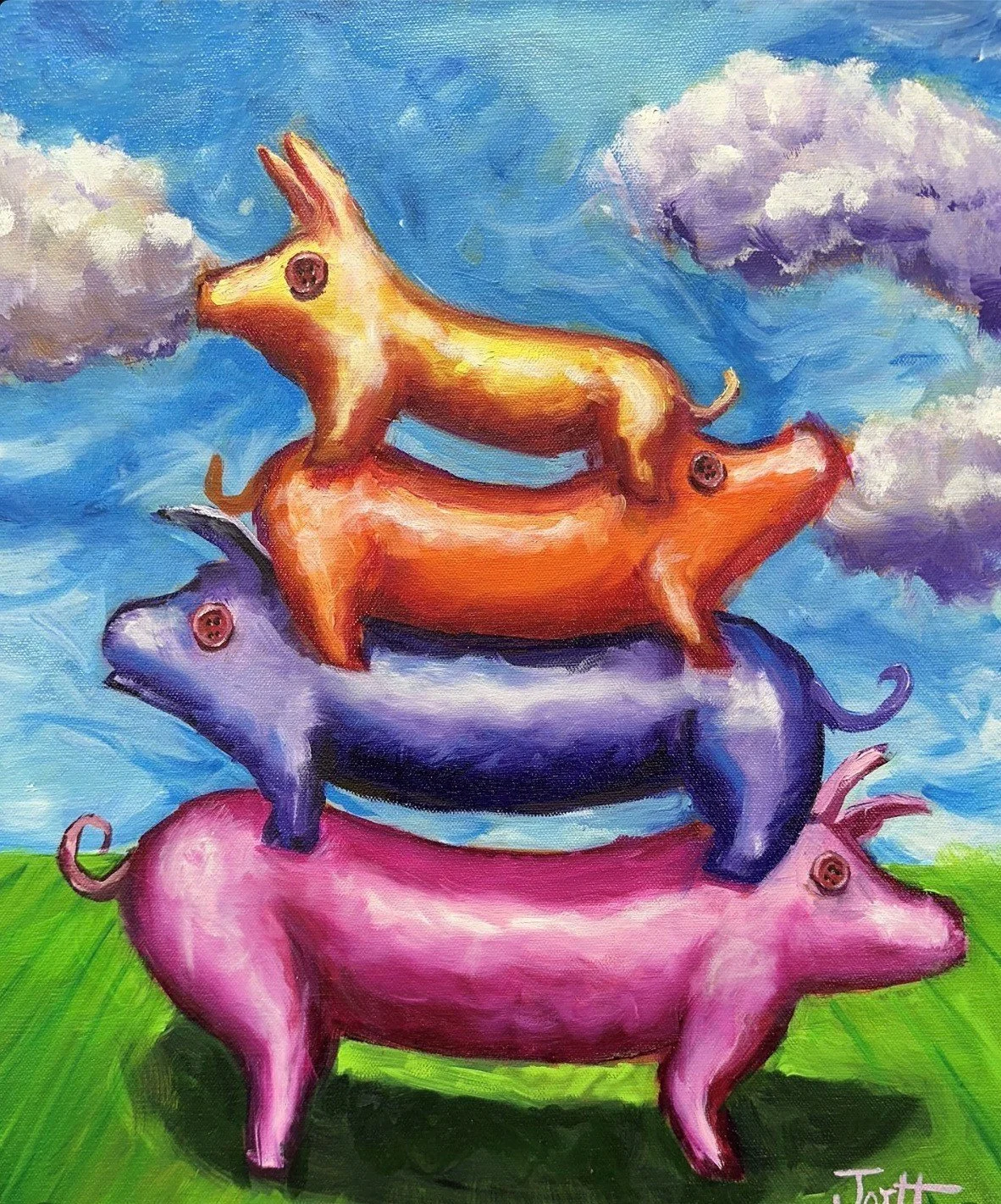 This project will be based on Jortt’s piece, “Four Pigs” a fun painting of some very colorful swine stacked upon each other. A demonstration of this painting is from the first episode of the Jortt Show. https://youtu.be/tGPXCrTuAdg?si=DYmn3Ab_lttv2NKd